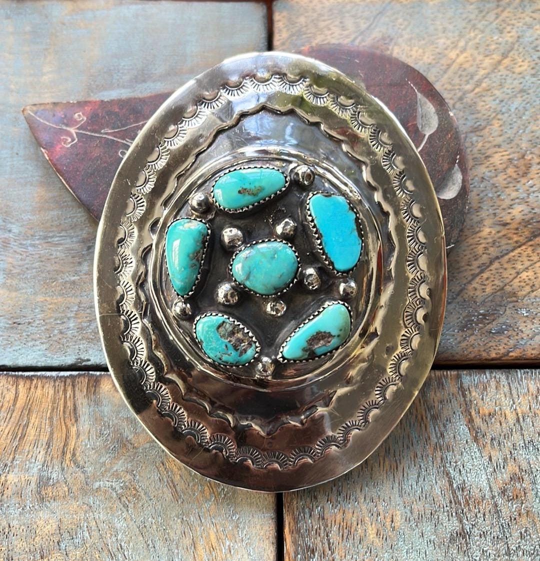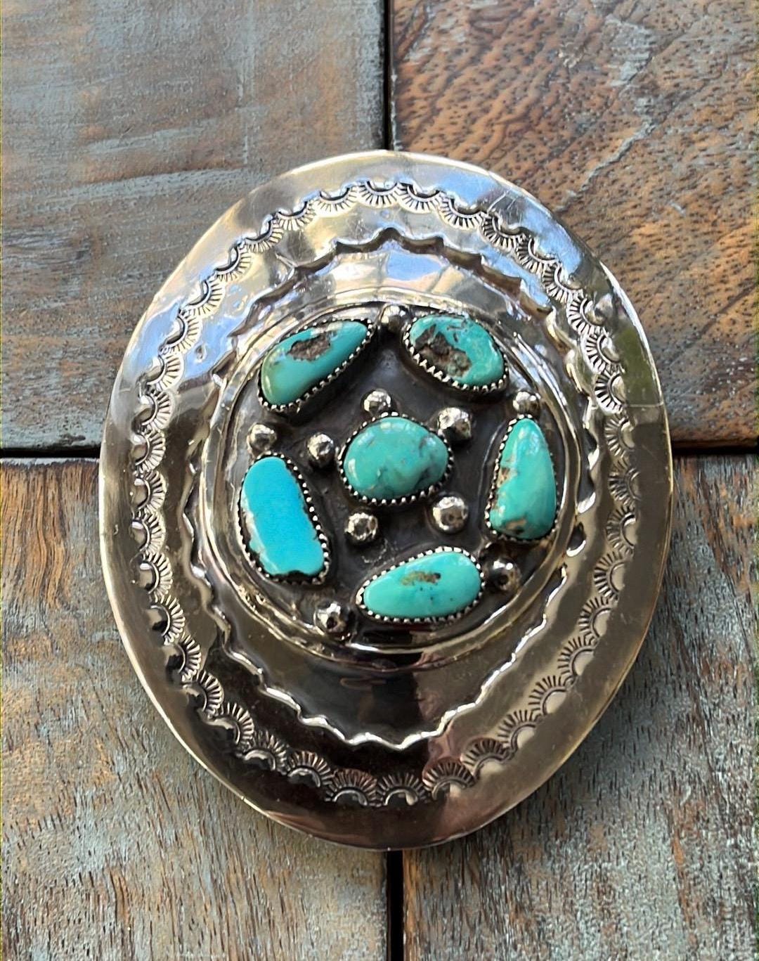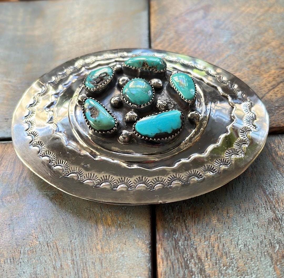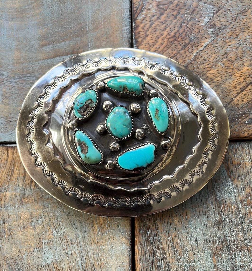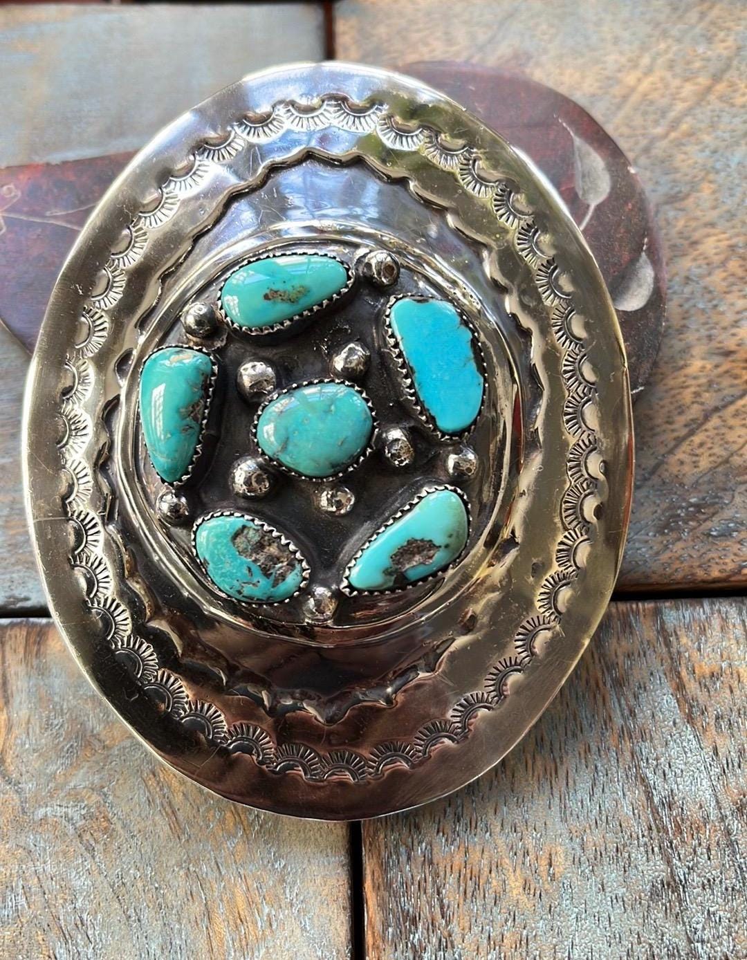 Sterling silver and natural turquoise belt buckle circa 1980’s