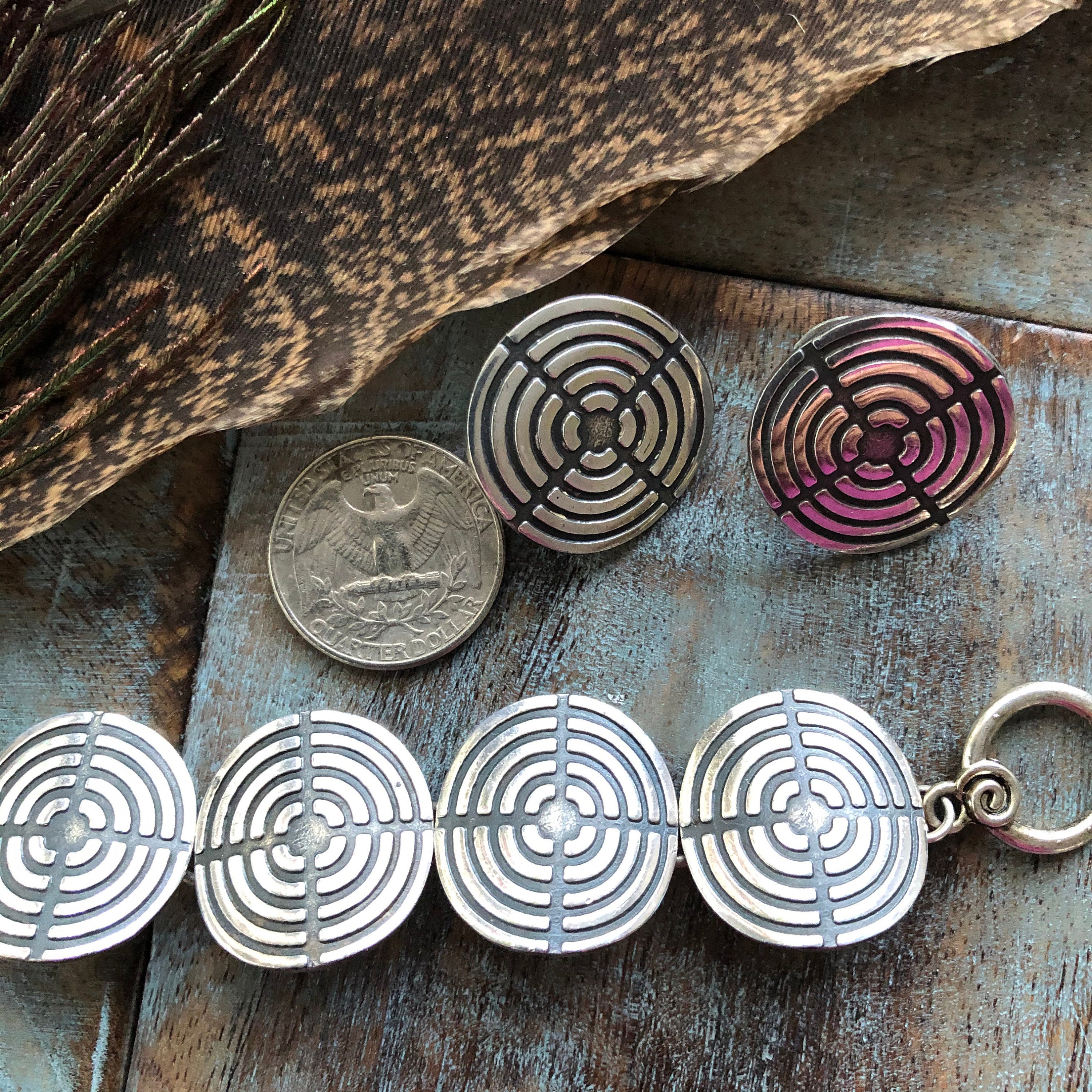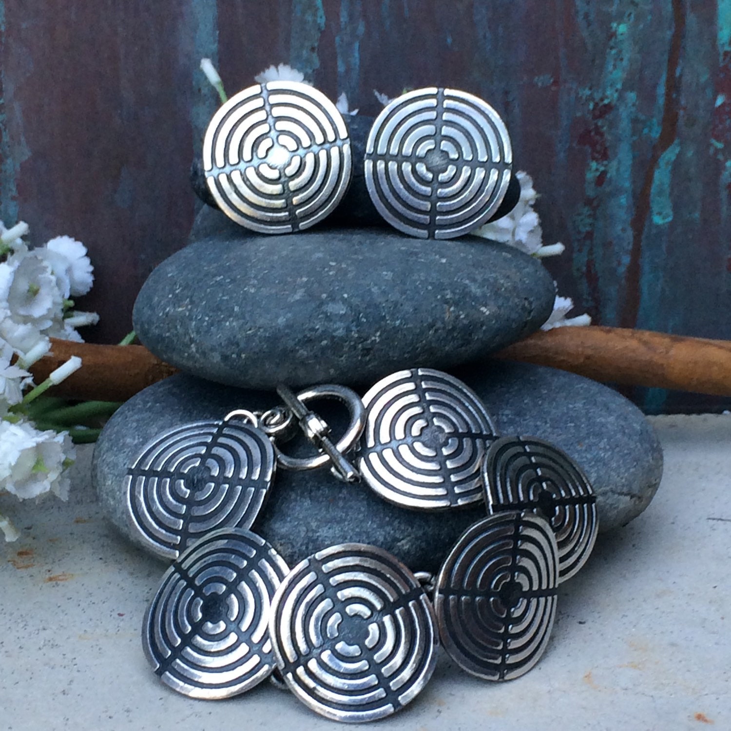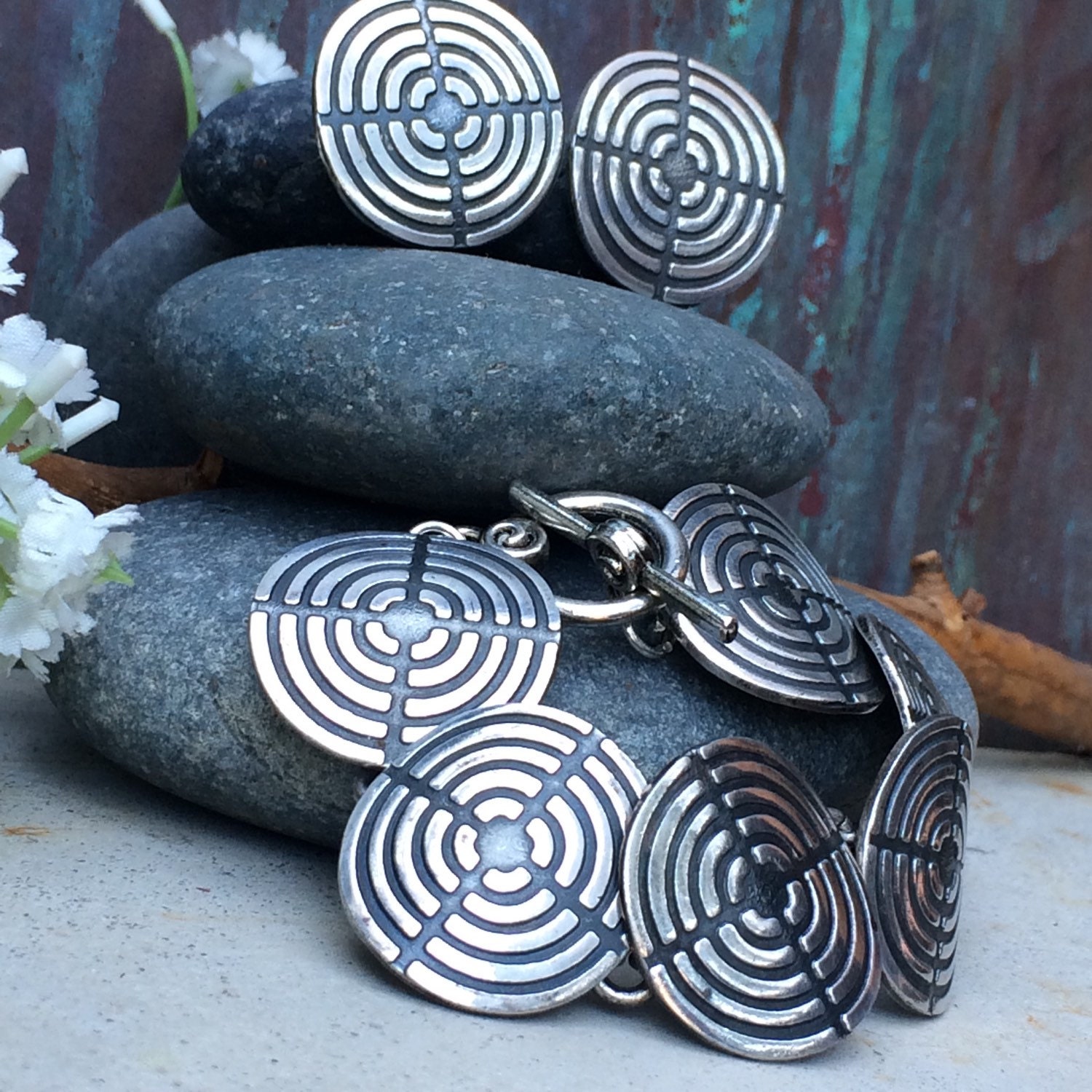 Bracelet measures 7" long and 1" wide fastens with a toggle clasp